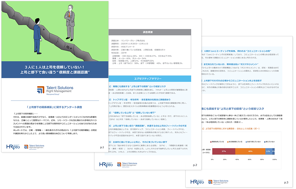 本レポートでは、なかなか聞けない"上司部下双方の本音"を読み解き、より良い関係構築の糸口について考察します。